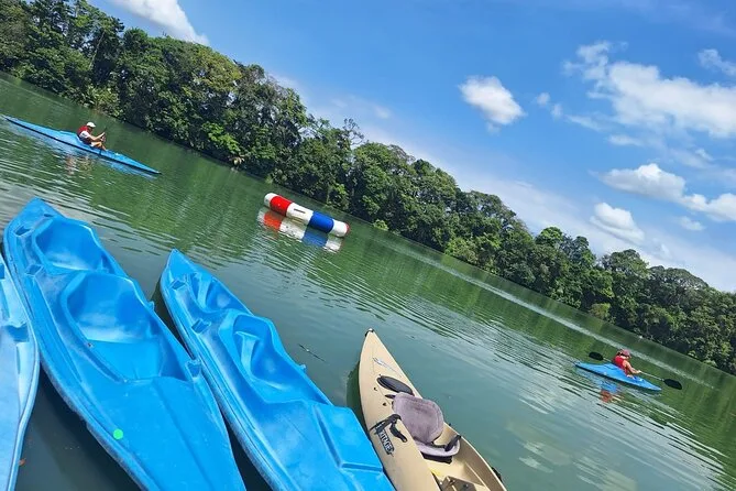 Après la randonnée, on a pu choisir entre kayak ou paddle pour une heure sur cette lagune cachée au cœur du parc. Honnêtement, j’ai pris le kayak, parce que mon équilibre est plutôt précaire. L’eau était fraîche et claire ; on voyait les poissons filer sous la surface si on regardait bien. Mon amie a testé la balançoire Tarzan—elle a crié (dans le bon sens) puis a ri tellement fort qu’elle a failli tomber à l’eau. Des enfants sautaient sur un trampoline pas loin, et un écho joyeux flottait sur l’eau.