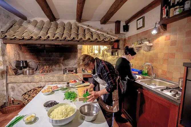 Vous cuisinerez des plats traditionnels comme la peka ou la zelena menestra, du pain maison, une soupe aux légumes du jardin et un gâteau local authentique.