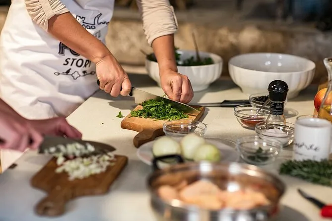 Rejoignez un petit groupe en campagne de Dubrovnik pour un atelier de cuisine dalmate avec des hôtes locaux : découpe de légumes frais, pain maison, dégustation de vin, et rires autour d’un repas 4 services. Attendez-vous à une vraie chaleur humaine, des échanges sincères et des saveurs qui resteront gravées bien après votre départ de Croatie.