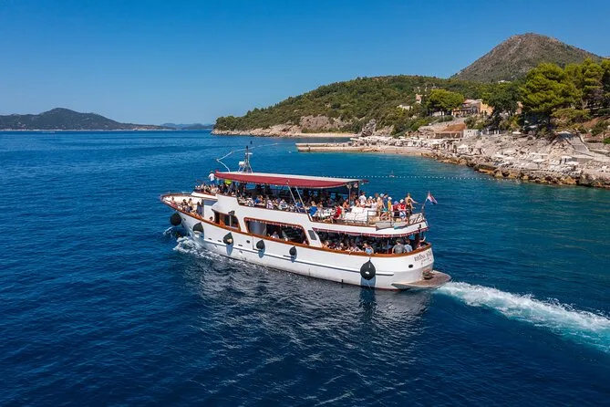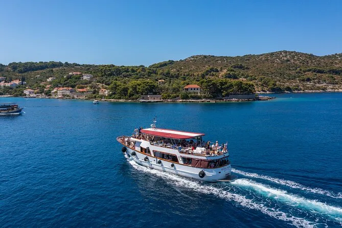 La croisière d’une journée complète dure environ 8 heures, avec des arrêts à Koločep, Šipan et Lopud.
