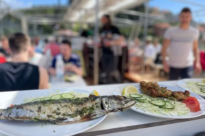 Votre journée comprend la prise en charge optionnelle depuis les hôtels de Dubrovnik, tous les trajets en bateau entre Koločep, Šipan et Lopud à bord de la Regina Maris avec beaucoup d’espace pour se détendre (même des poufs pour s’allonger si vous voulez), un déjeuner dalmate fraîchement préparé avec choix entre poisson, poulet ou végétarien, accompagné de vin blanc local et de boissons sans alcool servis à bord, l’accès WiFi pendant toute la traversée, ainsi que quatre toilettes séparées hommes/femmes pour éviter les files d’attente avant de repartir profiter du soleil insulaire.