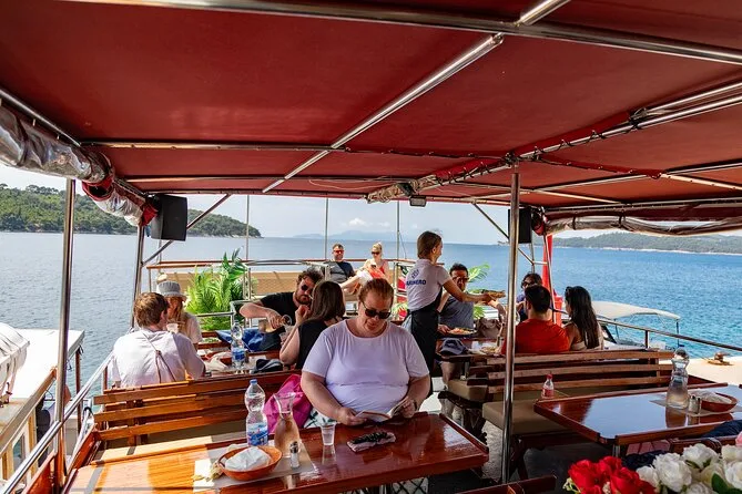 Le bateau dispose d’un salon climatisé (intérieur) et d’un pont supérieur ouvert.