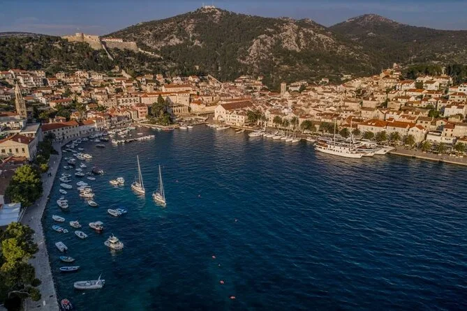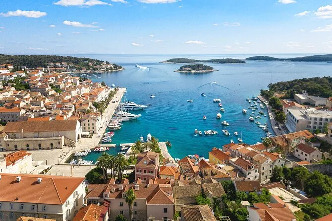 Vous nagerez sur la célèbre plage de Zlatni Rat en Croatie, explorerez des criques secrètes des îles Pakleni, flânerez dans les rues historiques de Hvar et dégusterez du vin local — tout cela lors d’une journée privée et détendue au départ de Split.