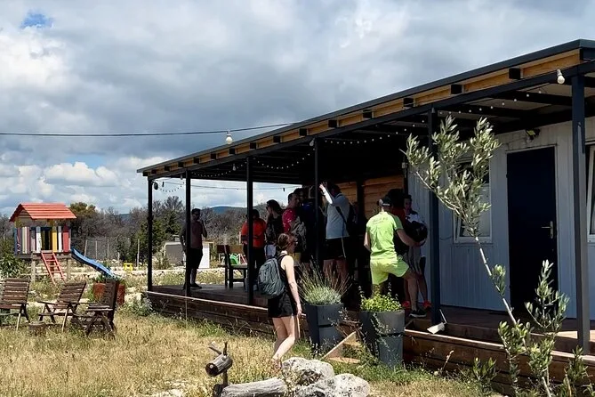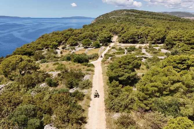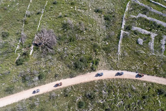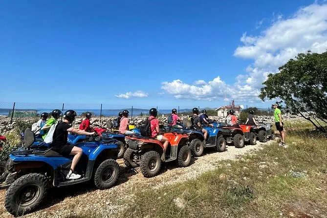 Votre journée comprend le parking gratuit à Žedno, une bouteille d’eau pour rester hydraté sous le soleil de l’île, des casques pour tous (même si ça écrase un peu la coiffure), le carburant inclus pour rouler sans souci, les taxes locales déjà réglées, et des ponchos en cas de pluie — le tout encadré par un guide local qui connaît chaque virage de ces chemins.