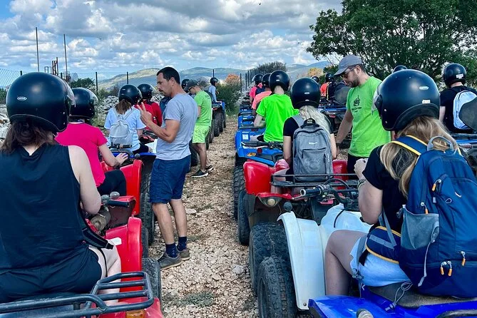 Ce qui m’a tout de suite frappé, c’est cette odeur — un mélange de romarin sauvage et de l’air salé de l’Adriatique. On venait de se garer à Žedno (parking gratuit, un vrai soulagement après avoir tourné dans Split la veille), casques un peu trop grands mais peu importe. Notre guide, Marko, avait ce talent pour rendre la consigne de sécurité aussi naturelle qu’une conversation entre potes — il a même plaisanté sur sa collection de ponchos « tendance » au cas où la pluie pointerait le bout de son nez. Les quads faisaient un peu peur au début, mais une fois lancé sur ces chemins de terre au sommet de l’île de Čiovo, c’est juste… un vrai plaisir. On entend les cailloux craquer sous les roues et parfois, à travers la brume, on aperçoit Split en contrebas — presque irréel.
