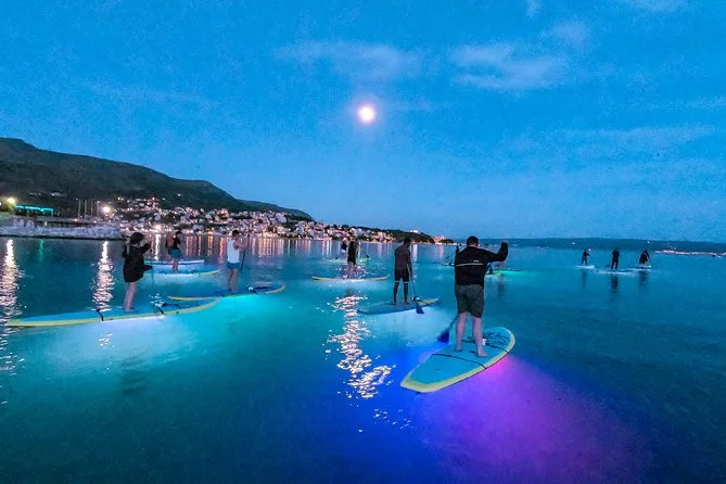 Pagayez après le coucher du soleil sur des paddles lumineux entre mer et rivière à Split, guidé par un local qui partage ses histoires. Profitez de moments calmes sous les falaises étoilées, observez les poissons sous votre planche et laissez-vous porter loin du bruit de la ville. Transfert, matériel complet et instruction incluse — une expérience lumineuse inoubliable.