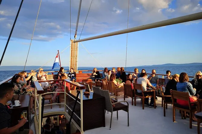 Je ne suis pas fan des “croisières au coucher du soleil” (ça sonne souvent cliché), mais là, voir les plages de Split défiler en sirotant un vin pétillant bien frais, ça a fait son effet. La musique live a démarré — deux gars à la guitare et une chanteuse avec une voix puissante. À un moment, ils ont joué une chanson dalmate que tout le monde semblait connaître, sauf moi. Les gens ont applaudi quand même. L’air avait ce goût de sel et de vin blanc, si vous voyez ce que je veux dire. L’équipage remplissait les verres sans faire de chichi. Les enfants couraient près de la proue pendant que les parents se blottissaient contre la rambarde.