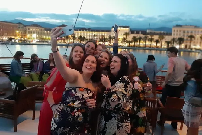 Votre soirée comprend deux heures de navigation à bord du Polaris le long de la riviera de Split avec vin pétillant, vin, bière et boissons sans alcool à volonté depuis un open bar. Un groupe local joue de la musique live tout au long du trajet ; le WiFi est disponible pour partager vos photos immédiatement. Toutes les taxes et frais sont inclus avant le retour au port après le coucher du soleil.