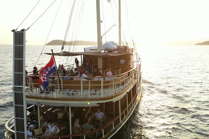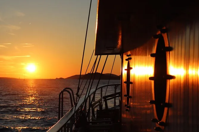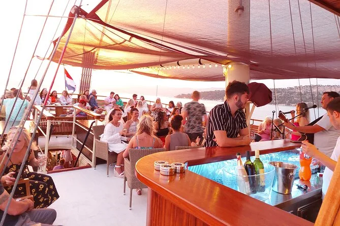 Montez à bord d’un yacht classique à Split pour une croisière au coucher du soleil détendue, bercée par la musique live qui flotte dans l’air marin. Savourez des boissons à volonté en glissant devant la colline de Marjan et les plages de la ville, entouré de locaux et de voyageurs. Deux heures de chaleur, de rires et de nouvelles perspectives sur la riviera de Split, surtout quand la nuit tombe sur l’eau.