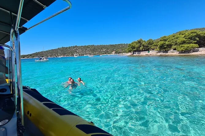 Votre journée comprend tous les transferts en bateau rapide entre Split et cinq îles avec un skipper local qui guide votre groupe (jusqu’à 12 personnes), l’entrée dans la grotte bleue de Biševo avec un guide officiel à l’intérieur, l’usage de masques de snorkeling lors des arrêts baignade à la baie de Stiniva et la lagune de Budikovac, ainsi que les gilets de sécurité pour tous à bord. Vous aurez aussi de la musique Bluetooth si quelqu’un veut jouer les DJ — sans oublier votre serviette et votre crème solaire.