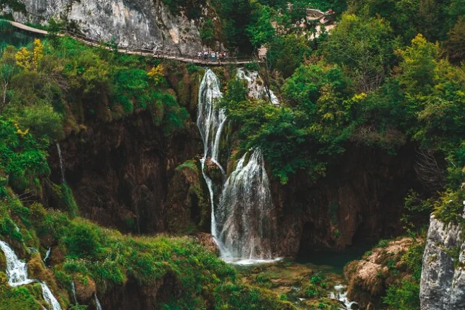 Le parc en lui-même paraît presque irréel. On entend l’eau avant de la voir — ce bruit constant de rivière qui court sous les arbres. On a commencé à marcher sur ces passerelles en bois au-dessus des lacs supérieurs, et je m’arrêtais sans cesse pour regarder en bas, tellement l’eau était limpide que ça me donnait le vertige. Luka nous a appris quelques noms locaux des lacs (j’ai essayé de répéter « Prošćansko jezero » et j’ai lamentablement échoué — il a rigolé sans me juger). Il y avait des familles avec poussettes, des couples plus âgés, des gens qui prenaient juste le temps d’admirer. L’odeur des feuilles humides collait à mes chaussures.