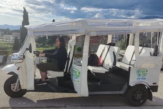 Parcourez la vieille ville de Split et la côte en tuk-tuk électrique, avec pauses aux vues sur la mer au parc Sustipan et à la plage Kasuni, puis une pause plus longue au café Teraca Vidilica sur la colline de Marjan. Attendez-vous à des arrêts photos rapides, des anecdotes locales et un regard neuf sur les rues animées de Split, entre détente et surprises.