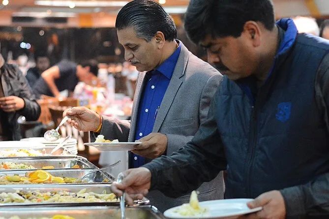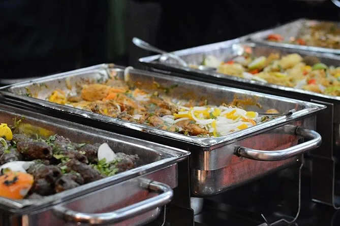 Un buffet à volonté avec des plats internationaux et égyptiens traditionnels, avec des options végétariennes.