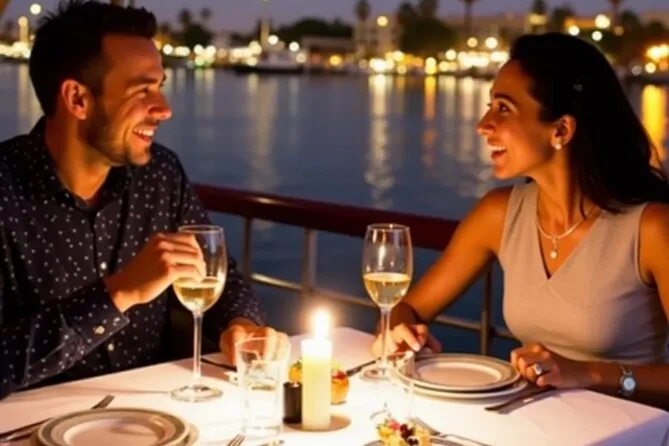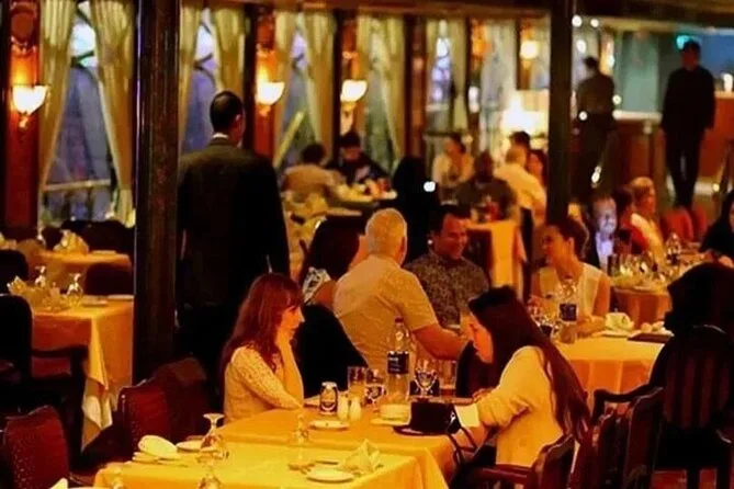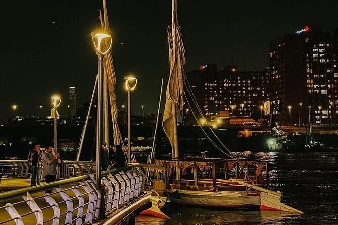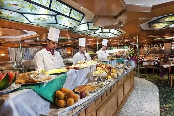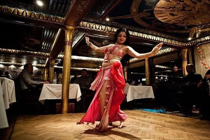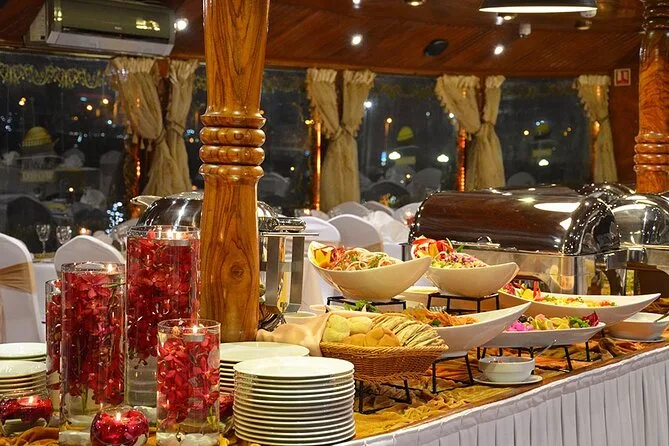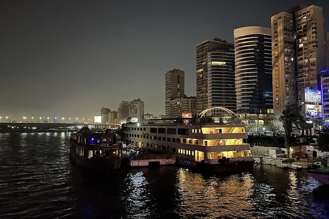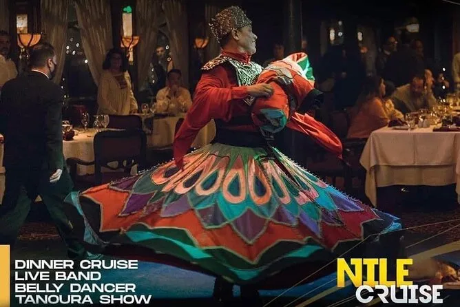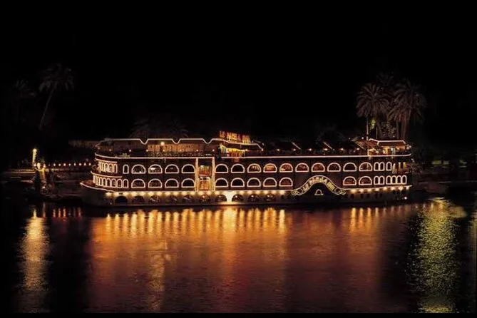 Embarquez pour une croisière dîner animée sur le Nil au Caire avec buffet à volonté et spectacles vivants — danse orientale et danseurs folkloriques Tanoura inclus. Profitez des vues sur la ville depuis les grandes fenêtres ou le pont, pendant que votre guide local partage ses histoires. La prise en charge à l’hôtel facilite tout pour que vous puissiez simplement vous laisser porter par l’ambiance nocturne du Caire.