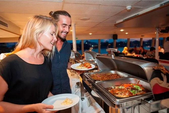 Votre soirée comprend la prise en charge privée à l’hôtel en véhicule climatisé, tous les frais d’entrée et taxes inclus, de l’eau en bouteille dans la voiture, un buffet à volonté avec plein de choix végétariens (j’en ai repris), ainsi que tous les spectacles vivants à bord avant le retour tardif à votre hôtel.