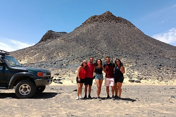 Le sable craque sous vos bottes en sortant du 4x4 — à perte de vue, rien que le désert, des collines volcaniques noires au loin, et un ciel qui semble infini. Notre guide bédouin, Mahmoud, connaissait tous les raccourcis entre les dunes. Il a même repéré un petit renard qui filait derrière un rocher près de la Montagne de Cristal — franchement, je l’aurais raté sans lui.