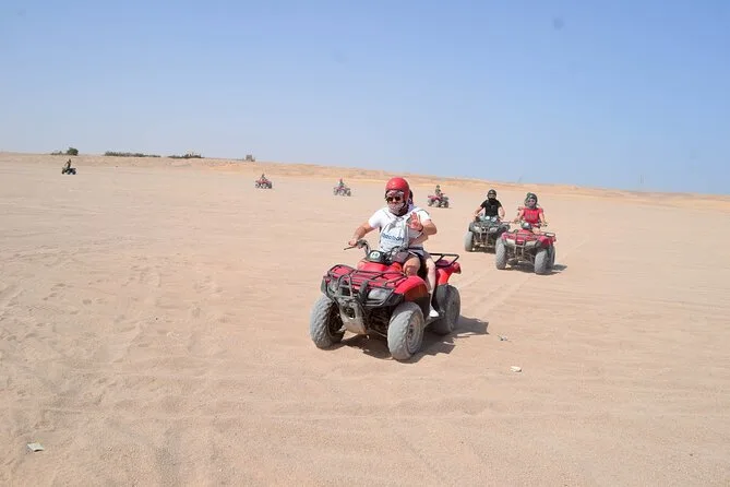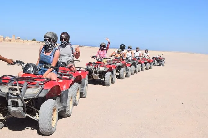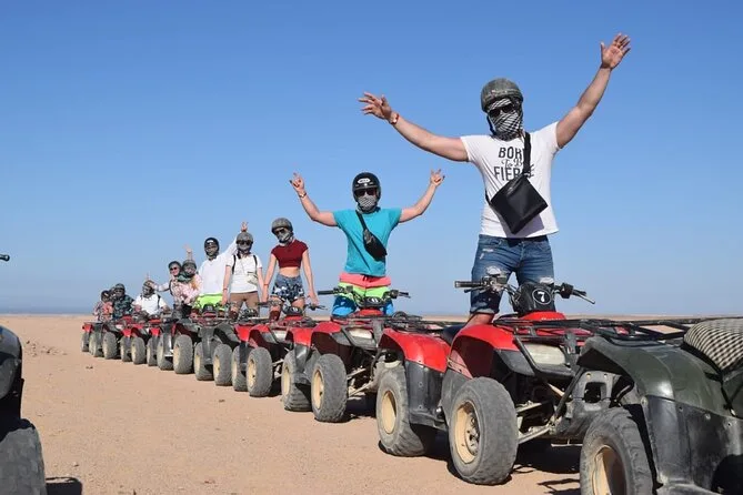 Parcourez le désert de Hurghada en quad, dévalez les dunes en buggy, partagez un thé sucré avec les Bédouins avant un dîner BBQ sous les étoiles. Guidé par des locaux, avec un spectacle folklorique pour illuminer le crépuscule, c’est une journée gravée dans la mémoire bien après avoir secoué tout le sable.