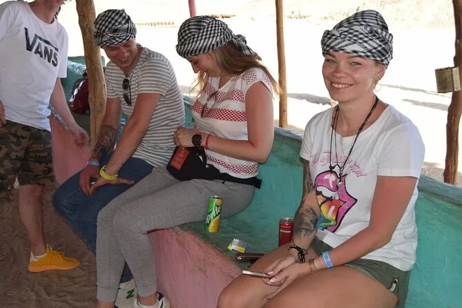 Le passage au buggy a été rapide — quinze minutes, mais assez pour que mes dents crissent de sable (je vous jure, il se glisse partout). Ensuite, on a pris le 4x4 pour s’enfoncer plus loin dans le désert. Le silence là-bas est étrange quand on a l’habitude du bruit de la ville ; juste le moteur et parfois un faucon qui plane au-dessus. On s’est arrêtés dans un camp bédouin où des enfants jetaient des regards timides derrière les tentes, et un vieil homme nous a servi un thé au goût doux et fumé. Mahmoud nous a raconté quelques anecdotes sur la vie bédouine — il a même plaisanté en disant que son chameau était « le vrai patron ». J’ai essayé de monter un chameau ; c’est moins élégant que sur Instagram.