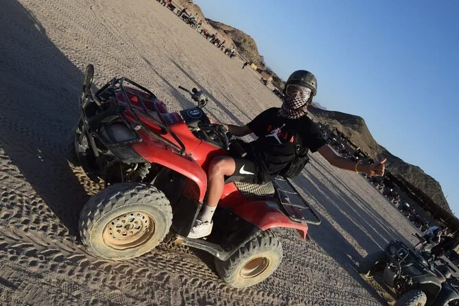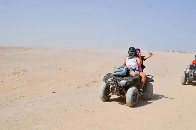 « Vous avez déjà essayé d’enrouler un foulard autour de votre visage quand le vent souffle ? » C’est comme ça que tout a commencé pour moi — à tâtonner maladroitement avec le tissu pendant que notre guide, Mahmoud, souriait en m’expliquant comment bien le nouer. Les quads étaient alignés au bord du sable de Hurghada, les moteurs ronronnant doucement. L’odeur d’essence mêlée à la poussière flottait déjà dans l’air. Dès qu’on a démarré, l’air sec et vif m’a frappé les joues, et j’avais sans cesse peur que le vent m’arrache mes lunettes de soleil. Quarante-cinq minutes à sauter sur les dunes — les mains crispées sur le guidon, mais impossible de ralentir. Mon pote a failli nous faire basculer une fois ; on a juste éclaté de rire comme des gamins.