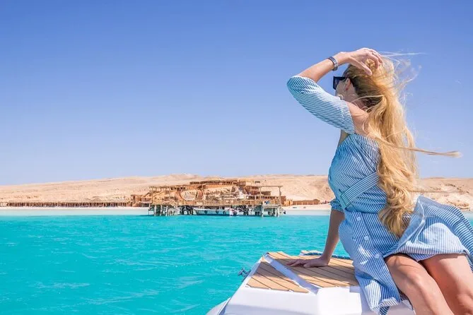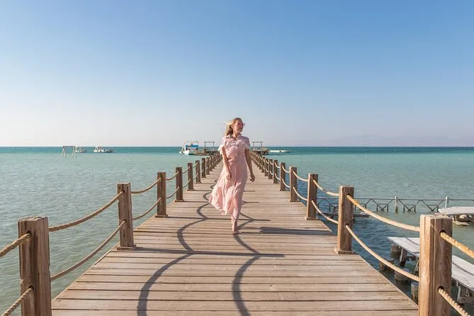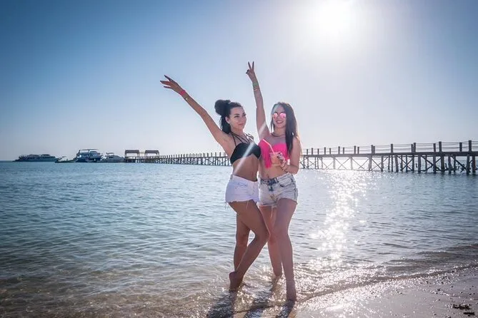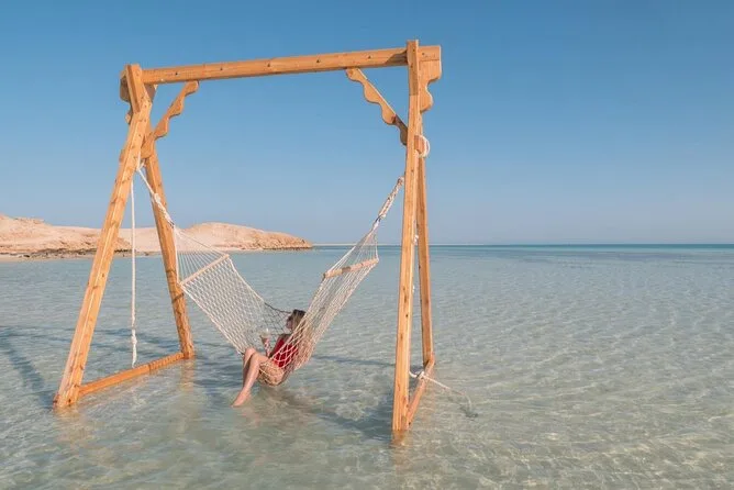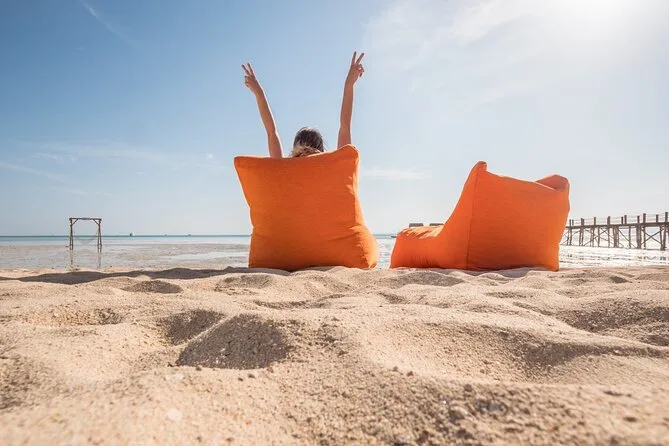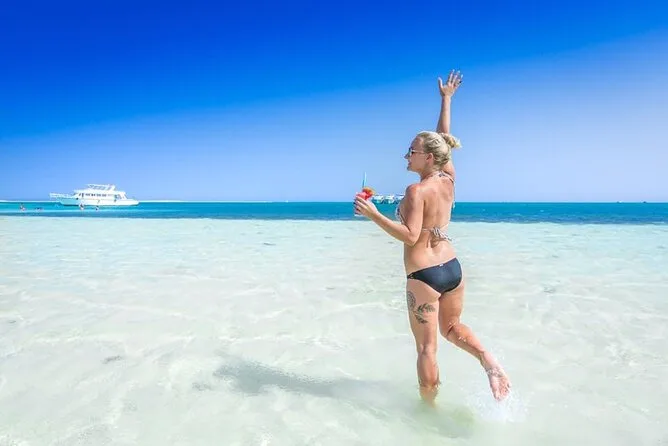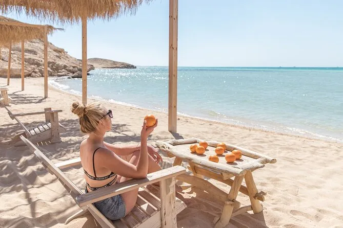Commencez votre journée en partant de Hurghada vers Orange Bay avec prise en charge à l’hôtel incluse. Profitez de deux arrêts snorkeling guidés dans les eaux cristallines de la mer Rouge avant de vous détendre deux heures sur le sable fin de l’île Orange. Un déjeuner buffet est servi à bord entre les baignades, et des activités comme la bouée banane ajoutent une touche de fun. Attendez-vous à des moments de calme et de couleurs inoubliables.