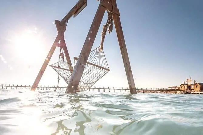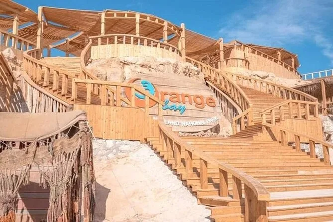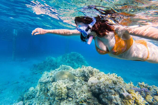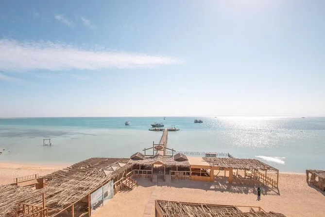 Votre journée comprend la prise en charge climatisée à Hurghada, tout le matériel de snorkeling avec encadrement expert sur deux récifs, environ deux heures de détente ou baignade sur l’île Orange Bay, un déjeuner buffet frais servi à bord (avec boissons), ainsi que des activités nautiques amusantes comme la bouée banane, avant un retour confortable au coucher du soleil.