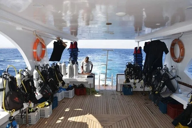 Votre journée inclut la prise en charge gratuite depuis tout hôtel à Hurghada ou Makadi, l’utilisation complète du matériel de plongée, deux plongées guidées pour débutants avec un moniteur toujours à vos côtés, ainsi qu’un déjeuner fraîchement préparé et boissons à volonté servis à bord avant le retour confortable.