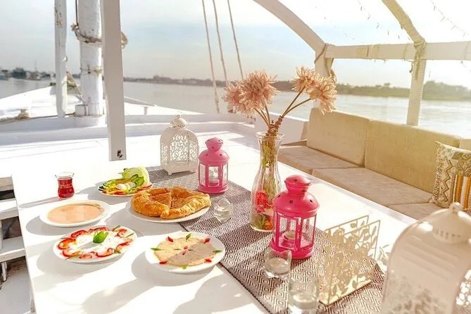 Glissez le long du Nil au Caire à bord d’une felouque privée, partagez des plats égyptiens frais et un thé sucré avec un guide local. Attendez-vous à une brise légère, des vues adoucies sur la ville et du temps pour savourer l’instant — avec prise en charge facile à l’hôtel incluse.