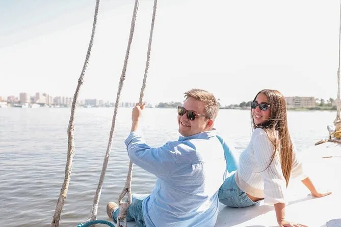 Votre journée comprend la prise en charge privée à l’hôtel depuis n’importe où au Caire ou à Gizeh, 2 heures de navigation en felouque privée sur le Nil avec un déjeuner égyptien (ou petit-déjeuner ou dîner selon votre choix), dessert et boissons à bord — plus tous les frais inclus pour que vous profitiez pleinement.