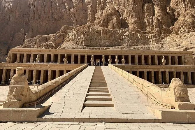 Votre journée comprend la prise en charge à l’hôtel en véhicule climatisé avec boissons à bord, les billets d’entrée pour le temple de Karnak, la Vallée des Rois, le temple d’Hatchepsout, les Colosses de Memnon, un déjeuner traditionnel au bord du Nil (avec options végétariennes), toutes les taxes et frais, ainsi qu’un accompagnement tout au long de la visite par un égyptologue expérimenté, avant un retour confortable en fin de journée.