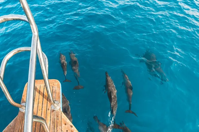 Vivez une expérience unique : nagez avec des dauphins sauvages dans la lagune de Marsa Alam, explorez des récifs colorés avec des guides locaux, savourez un déjeuner frais sur le bateau, puis baladez-vous pieds nus sur une île paisible — tous ces petits détails qui restent gravés longtemps après.