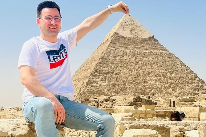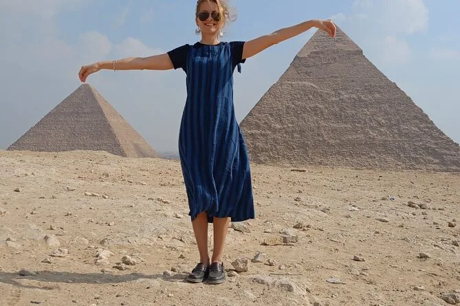 Votre journée comprend la prise en charge privée à l’hôtel en véhicule climatisé, les billets d’entrée si sélectionnés lors de la réservation, une bouteille d’eau pour rester au frais sous le soleil cairote, ainsi qu’un temps avec un égyptologue expert sur chaque site — et si vous optez pour cette option, le déjeuner est inclus avant le retour après la balade en felouque sur le Nil.