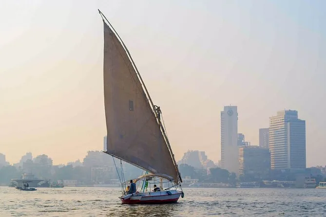 La dernière partie était différente — après toute cette pierre et cette chaleur, on a roulé jusqu’au bord du Nil pour notre balade en felouque. Le bateau a craqué quand on est montés ; la peinture s’écaillait sous ma main. L’ambiance était tout de suite paisible, juste l’eau qui clapote contre le bois et la silhouette du Caire qui défile au ralenti. Notre capitaine ne parlait pas beaucoup, mais souriait à chaque fois qu’on montrait quelque chose sur la rive — un pêcheur qui nous faisait signe, des enfants qui s’éclaboussaient dans les eaux peu profondes. Si vous tombez au bon moment, la lumière dorée enveloppe tout (on l’a presque ratée parce que j’étais lent à prendre des encas). Bref, je repense encore à cette brise sur l’eau après toutes ces heures au soleil.