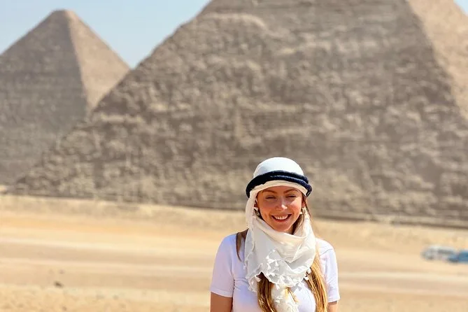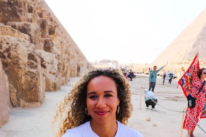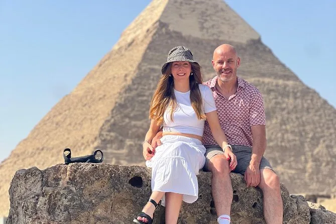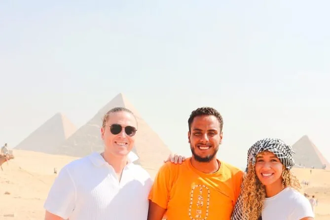 Votre journée comprend un transfert privé depuis votre hôtel au Caire (supplément si hors ville), les billets d’entrée pour les pyramides de Gizeh et le Sphinx, une balade de 30 minutes à dos de chameau à côté de ces merveilles, un guide égyptologue personnel ainsi qu’un photographe professionnel qui capture chaque instant (vous recevrez toutes les photos sur une carte mémoire), les déplacements en véhicule climatisé, et un déjeuner dans un restaurant 5 étoiles avant de revenir fatigué mais comblé.