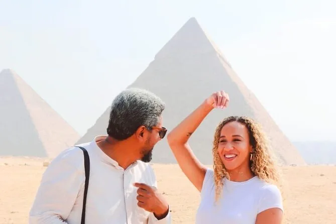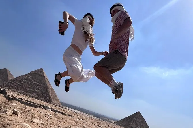 Face aux pyramides de Gizeh, vous vous sentirez tout petit, et la balade à dos de chameau vous fera rire (croyez-moi). Un égyptologue local vous raconte des histoires millénaires pendant qu’un photographe pro capture chaque instant. Inclus : transfert, entrées, déjeuner et toutes vos photos numériques pour profiter à fond.
