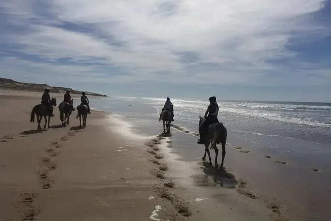 Les moniteurs nous ont accueillis (Ahmed, l’un d’eux, avait cette façon de caresser les chevaux qui les rendait presque aussi doux que de gros chiens). Casques sur la tête, rapide rappel des consignes pour ne pas tomber — ça m’a fait rire parce qu’au début, mes pieds ne touchaient même pas les étriers. On est partis, notre guide en tête, le bruit des sabots résonnant doucement sur le sable tassé, et soudain, il n’y avait plus que le silence, à part le vent et le bruit lointain des vagues. On sentait l’odeur du sel et quelque chose de sucré — peut-être des herbes sauvages ? Difficile à dire. En tout cas, ça m’est resté en mémoire.