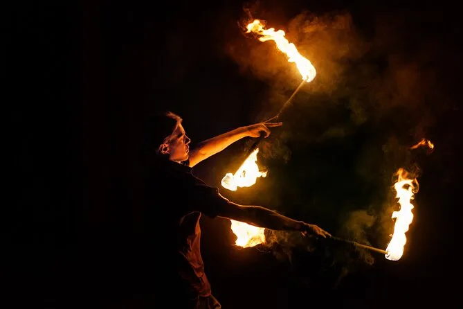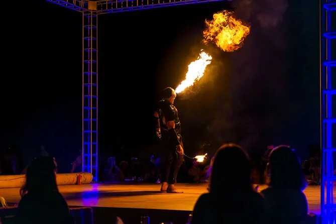 Votre soirée comprend la prise en charge et le retour à l’hôtel en véhicule climatisé à Sharm El Sheikh, l’entrée à Safari World, environ une heure de quad avec guides professionnels, un arrêt à la Montagne de l’Écho pour jouer avec les résonances, une balade à dos de chameau près du camp bédouin (avec pauses photos), du pain plat fraîchement préparé, un dîner buffet BBQ bédouin complet avec thé aux herbes, ainsi que des danses Tanoura et un spectacle de feu sous les étoiles du désert avant le retour.