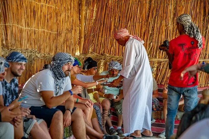 Traversez les dunes dorées du Sinaï en quad depuis Sharm El Sheikh, faites une pause à la Montagne de l’Écho pour tester ses fameuses résonances. Dégustez un thé bédouin sucré dans un camp du désert, puis partez pour une balade à dos de chameau au coucher du soleil. Terminez par un dîner BBQ sous les étoiles, animé par des danseurs et un spectacle de feu — un mélange parfait d’aventure et de chaleur humaine.