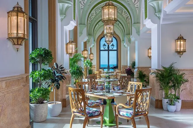 Voici votre chance de savourer un cappuccino orné d’or à l’Emirates Palace d’Abu Dhabi, de profiter d’un thé l’après-midi ou d’un buffet international aux saveurs locales, tout en admirant la grandeur d’un des hôtels les plus emblématiques au monde — avec le temps de savourer chaque bouchée et chaque instant, bien après votre départ.