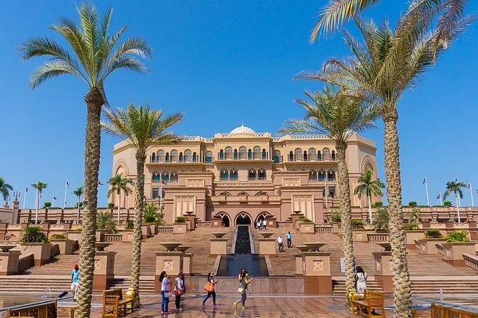 Après la mosquée, on a roulé sur Sheikh Zayed Road—des tours de verre et des villas qui défilaient, puis soudain, un marché traditionnel de dattes. L’odeur m’a frappé avant même de descendre : douce et terreuse, un mélange de miel et de poussière. J’ai goûté plusieurs sortes (j’ai préféré les bien collantes), et un vendeur a souri quand j’ai demandé une deuxième tournée. Ce sont ces petites pauses qui restent plus longtemps en mémoire que les palais parfois. D’ailleurs, on est passés devant Emirates Palace pour quelques photos—de l’or partout, des gardes raides comme des statues—et on a aussi aperçu le Palais Présidentiel. On n’est pas entrés, mais juste les voir de l’extérieur était déjà incroyable.