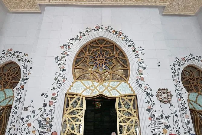Votre journée comprend la prise en charge à l’hôtel partout à Dubaï en mini-bus ou Land Cruiser 4x4 (selon votre choix), l’entrée à la Grande Mosquée Sheikh Zayed avec temps libre pour explorer, la visite d’une galerie d’art et du marché aux dattes avec dégustations, des arrêts photo à Ferrari World (extérieur), Emirates Palace et Palais Présidentiel (passage uniquement), plus un moment pour flâner à Heritage Village avant le retour—et toujours de l’eau en bouteille grâce à Ahmed ou le chauffeur du jour.