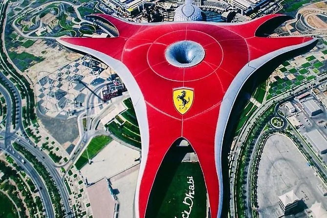 La visite inclut un arrêt photo à Ferrari World Abu Dhabi, mais pas l’entrée au parc.