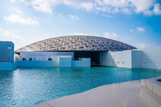 La Corniche m’a surpris — c’est tellement ouvert et bleu, avec des familles en pique-nique et des joggeurs qui filent comme s’ils étaient en retard à un rendez-vous important. On a fait un arrêt photo rapide au Emirates Palace et aux Etihad Towers (le spot Fast & Furious — Kareem a souri en le disant). Puis une balade devant le Louvre Abu Dhabi ; son toit projette des ombres mouvantes au sol qui ressemblent à de la dentelle. On n’est pas entrés, mais honnêtement, voir ce dôme se découper sur le ciel suffisait amplement.