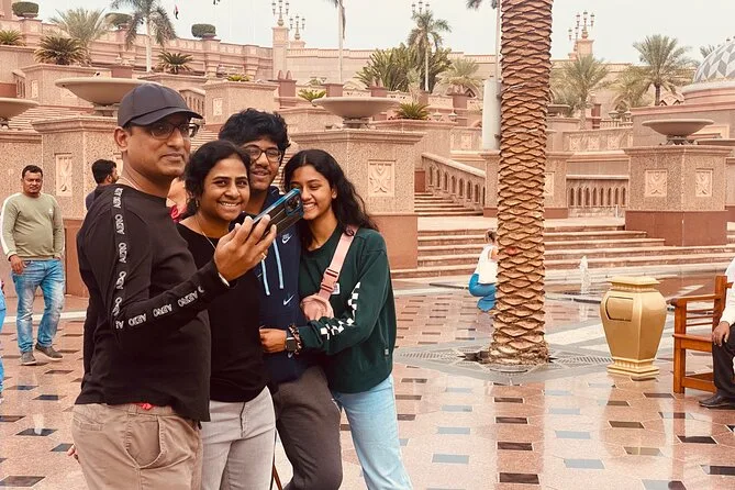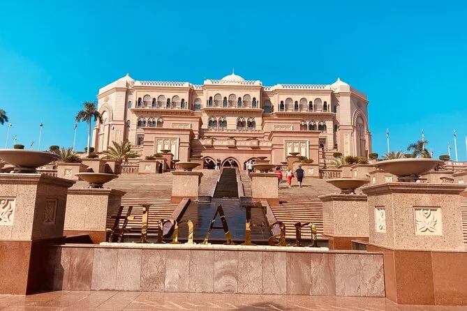 La visite inclut la mosquée Sheikh Zayed, l’Emirates Palace (extérieur), le marché aux dattes, le Village du Patrimoine, un arrêt photo aux tours Etihad, et une balade sur la Corniche.