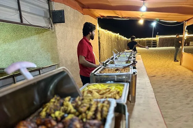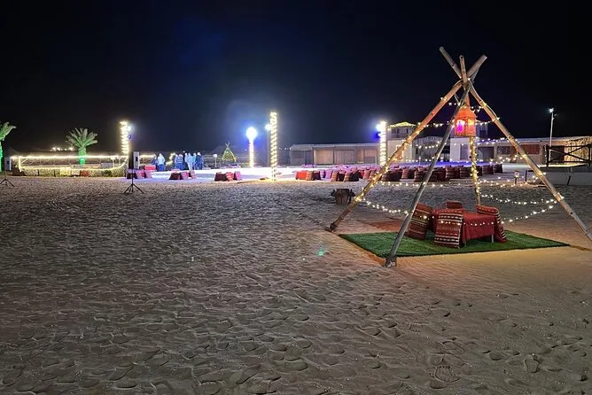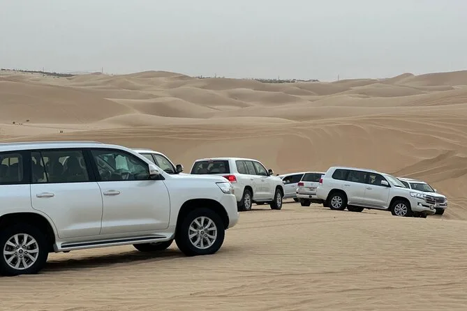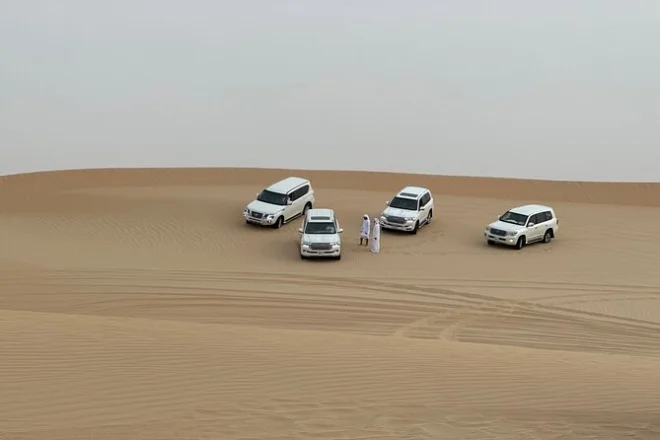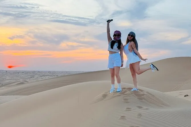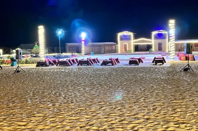 Votre soirée commence par une prise en charge dans les hôtels ou points de rendez-vous d’Abu Dhabi avant de partir dans le désert pour du dune bashing en 4x4 Land Cruiser. Vous profiterez d’un arrêt photo au sommet des dunes, puis de balades à dos de chameau, sandboard, photos en costumes arabes, tatouages au henné, dégustation de chicha — et enfin un buffet BBQ complet avec options végétariennes, accompagné de danses du ventre et spectacles de feu avant le retour à Abu Dhabi.