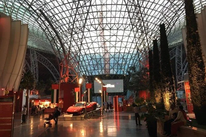 On a terminé par un arrêt photo rapide à Ferrari World (le toit rouge est impressionnant en vrai) avant de reprendre la route vers Dubaï. Sur le chemin du retour, je repensais à ce moment dans la mosquée, quand tout semblait suspendu — je ne sais pas pourquoi ça m’a autant marqué. Peut-être parce que c’était si différent de tout ce qu’on avait vu ce jour-là.