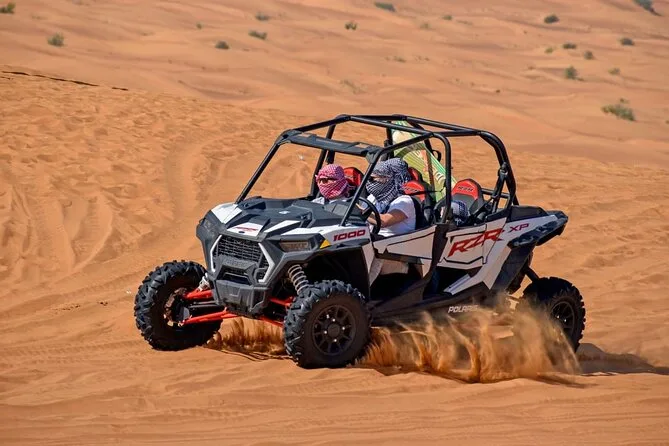 Prenez le volant d’un vrai buggy Polaris dans le désert de Dubaï avec transfert hôtel, guides experts et même une balade à dos de chameau. Un mélange d’adrénaline et d’authenticité — parfait si vous voulez plus qu’une simple visite touristique.