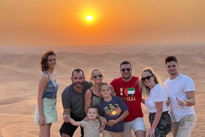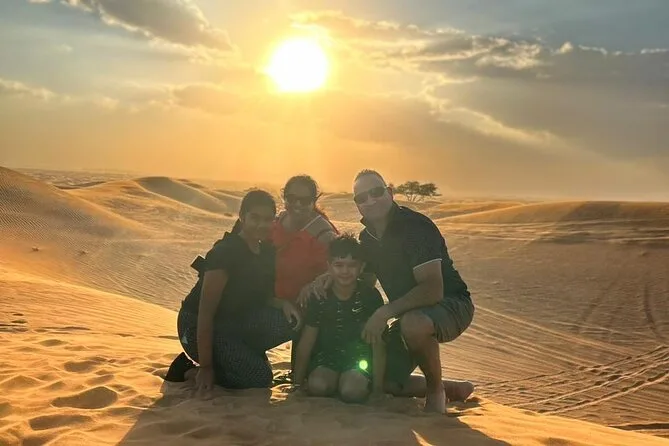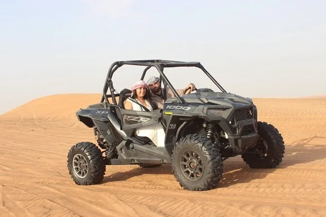 Votre journée comprend la prise en charge depuis n’importe quel lieu à Dubaï en véhicule climatisé, une balade en buggy double de 30 minutes à travers les dunes, des sessions gratuites de sandboard et de balade à dos de chameau, ainsi qu’un café ou thé fraîchement servis en plein désert avant le retour en ville.