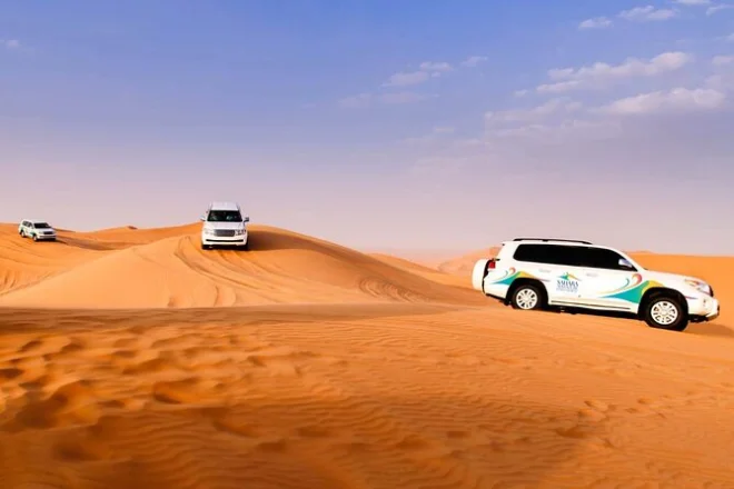 Votre soirée comprend la prise en charge et le retour à l’hôtel en véhicule climatisé depuis les hôtels de Dubai ; une balade guidée de 30 minutes en quad biplace sur les dunes rouges de Lahbab ; du temps pour faire du chameau et du sandboard ; l’accès à un camp bédouin avec café de bienvenue et dattes ; peinture au henné ; coin chicha ; spectacles en live de danse Tanura, feu et danse du ventre ; ainsi qu’un buffet barbecue complet avec dessert et boissons avant le retour à votre hôtel vers 21h30.