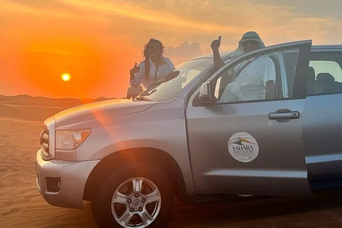 Quad dans les dunes rouges au coucher du soleil et magie du camp bédouin à Dubai