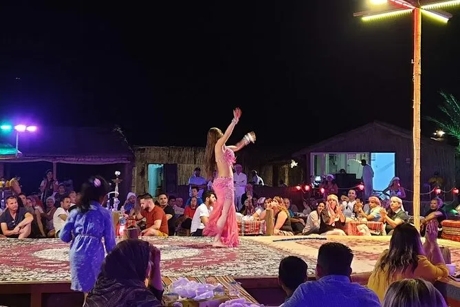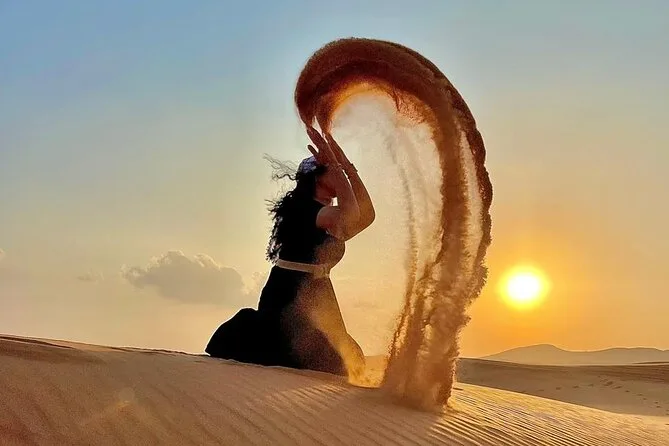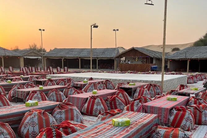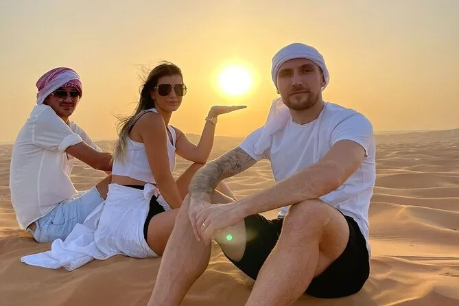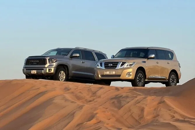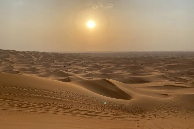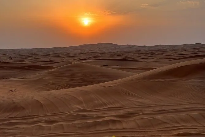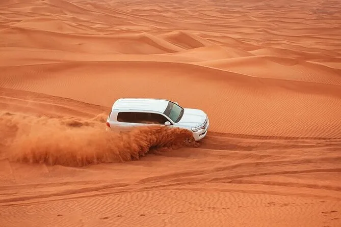 Votre journée comprend la prise en charge et le retour à votre hôtel ou résidence à Dubaï en 4x4 privé, du dune bashing dans le désert des dunes rouges près d’Al Madam, des arrêts pour sandboard et photos (avec quelques fous rires), de l’eau en bouteille, l’accès à un camp bédouin en soirée avec boissons à volonté (soft drinks, thé, café), une courte balade à dos de chameau, un petit tatouage au henné pour femmes et enfants, des spectacles vivants (danse Tanoura, danse orientale & cracheur de feu sauf pendant le Ramadan), ainsi qu’un dîner BBQ complet avec options végétariennes et non-végétariennes avant de retourner à votre hôtel la nuit.